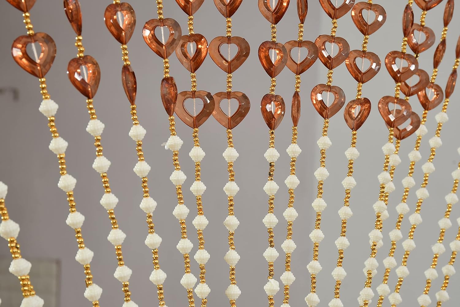Premium Pearl & Red Crystal Heart Beaded Curtain for Doorway, Window & Room Partition – Decorative Hanging Divider (7 Feet)